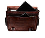 This handcrafted Vintage Computer Leather Bag combines timeless style with practicality. Made from rich dark brown goat leather, it features durable silver hardware and a soft canvas lining inside. Spacious yet elegant, it includes two convenient side pockets and a secure backside zipper pocket for organized storage. The sturdy top handle ensures a comfortable grip, making it ideal for carrying your essentials with a refined touch. Perfect for those who appreciate craftsmanship and vintage charm.