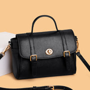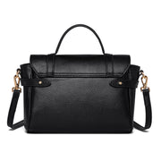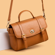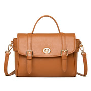 This is a refined and elegant accessory made from high-quality calf leather, perfect for both casual outings and formal occasions. This compact satchel features a structured design with a top handle and a detachable shoulder strap, allowing for versatile carrying options. The main compartment is spacious enough to hold your essentials, while the classic turn-lock closure and gold-tone hardware add a sophisticated touch.