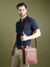 This handcrafted leather crossbody bag, made from genuine full-grain vegetable-tanned leather, offers durable elegance for both travel and work.
