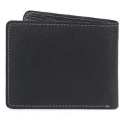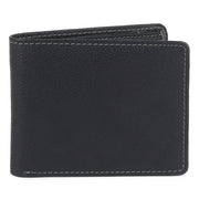 This black textured leather wallet features a refined grain finish and contrasting white stitching that enhances its sophisticated look.